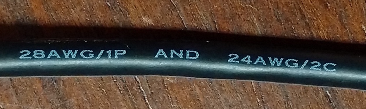 The above picture shows a cable that has 1 twisted pair (1P) at 28AWG for data, and 2 conductors (2C) at 24AWG for power.