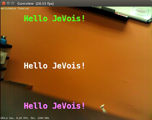 ... 16 - OUT: YUYV 640x480 @ 28.5fps CAM: YUYV 640x480 @ 28.5fps MOD: Tutorial:HelloJeVois ...